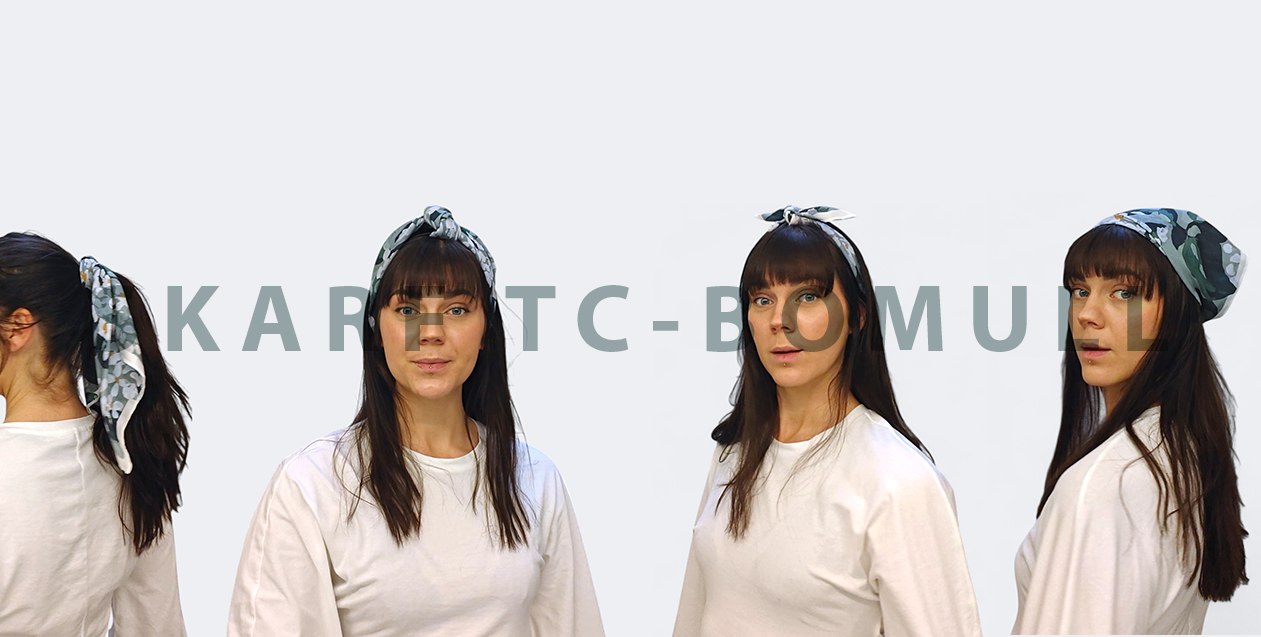 Senaste nyheten är en skarf i TC-bomull med mönstret "Blomsteräng". Passar fint att ha i håret nu när våren närmar sig.