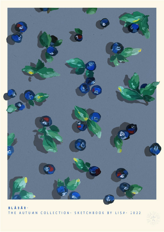 Poster med blåbärsmönster, i en härlig sensommar anda.50x70cm, finns även som 30x42cm (A3).