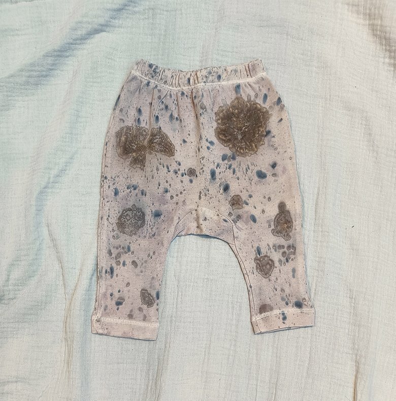 Leggings färgade med olika barker, blommor och lökskal.Naturfärgning i kombination med eco print, för bästa resultat!